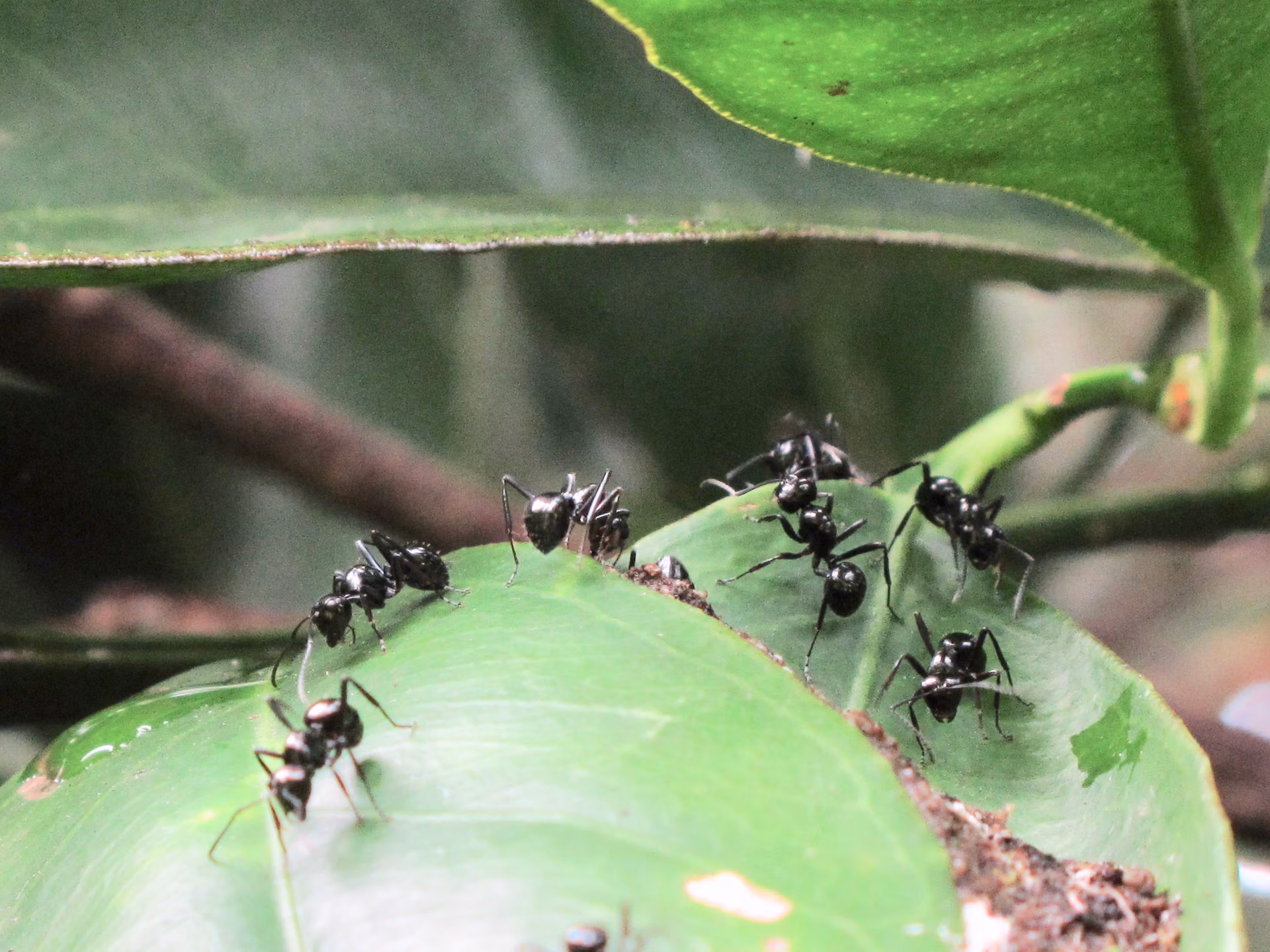 Ants are a well-known group of insects that are prevalent in crop environments. In terms of their feeding they can be foragers, scavengers and predators, and most are omnivores (eating both plant and animal). There are many ant species that are exclusively ground-dwelling but there are many whose workers forage mostly on plants as predators as well as gathering exudates or attending Hemipterans such as aphids for sugary-secretions.