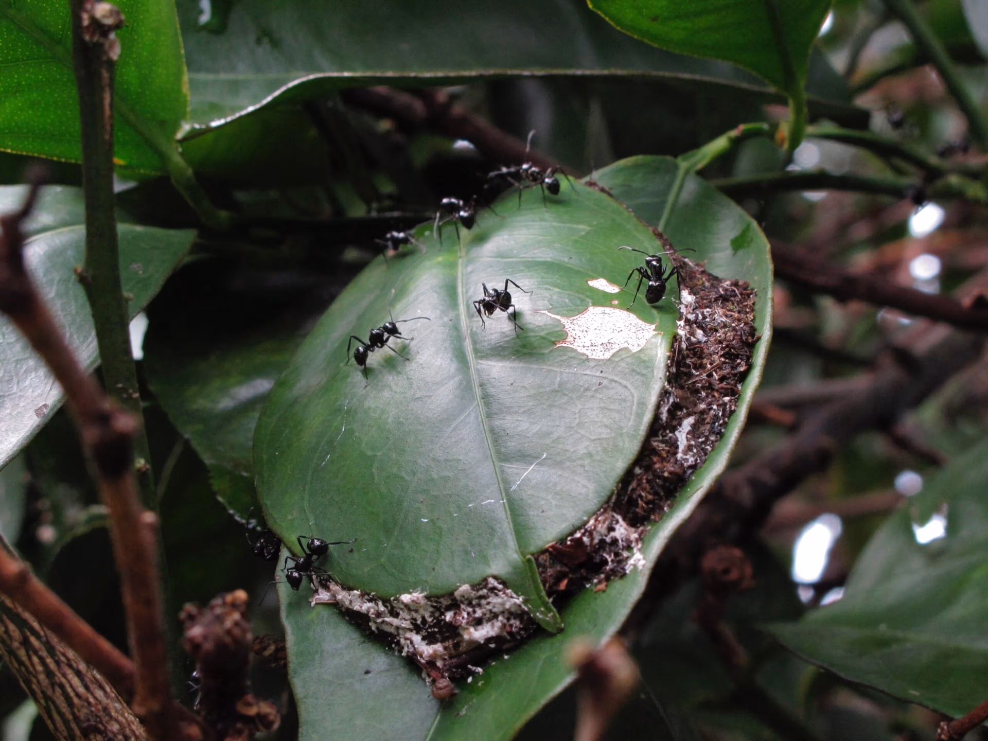 In tropical/subtropical orchard environments, ants dominate the tree canopy and are often key predators of moth eggs and larvae. In temperate regions, ants are mostly absent from trees. Hunting strategies can be either solitary or cooperative. Groups of ants can hunt cooperatively in a swarm-type situation, enabling them to overwhelm large prey item.