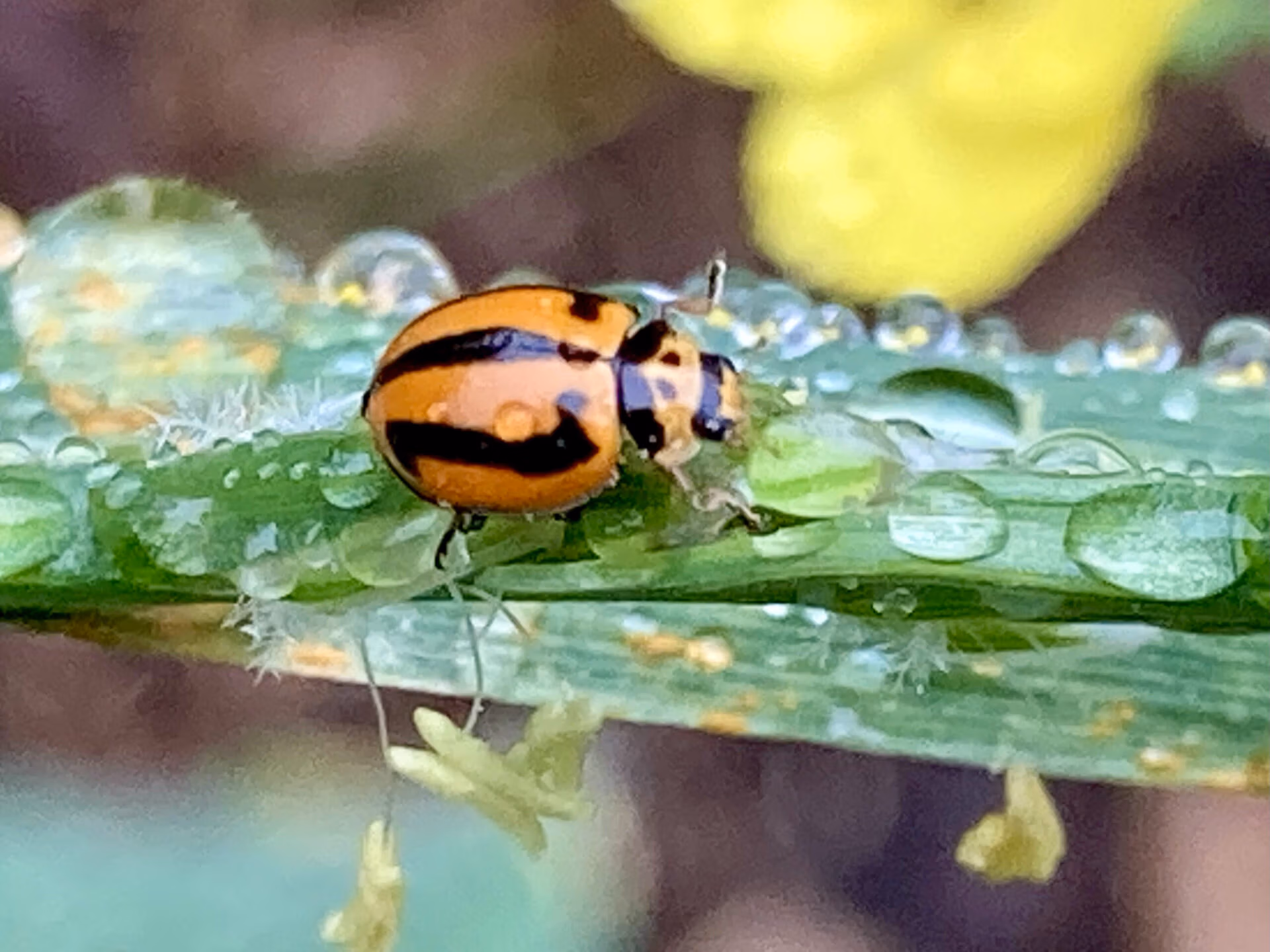 In Australia, ladybird beetles, or ladybugs, are typically small, round to oval and dome-shaped with distinctive colourful markings. Many are orange and black, or yellow and black, but several are mostly black or black and red. Both adult and larval stages of ladybird beetles are voracious feeders of aphids, and are highly effective predators where aphid populations are abundant.