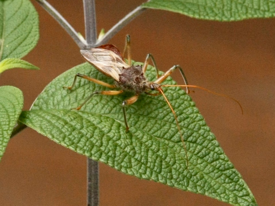 Assassin bugs (Hemiptera: Reduviidae) are large (adults are 25-30 mm long) and typically hunt in the plant canopy. They attack any soft bodied arthropod, including other bugs, caterpillars, bees, wasps and spiders. Assassin bugs use their rostrum to catch and pierce their prey. They ‘suck’ out their prey from the inside, leaving a dry, empty skin/shell.